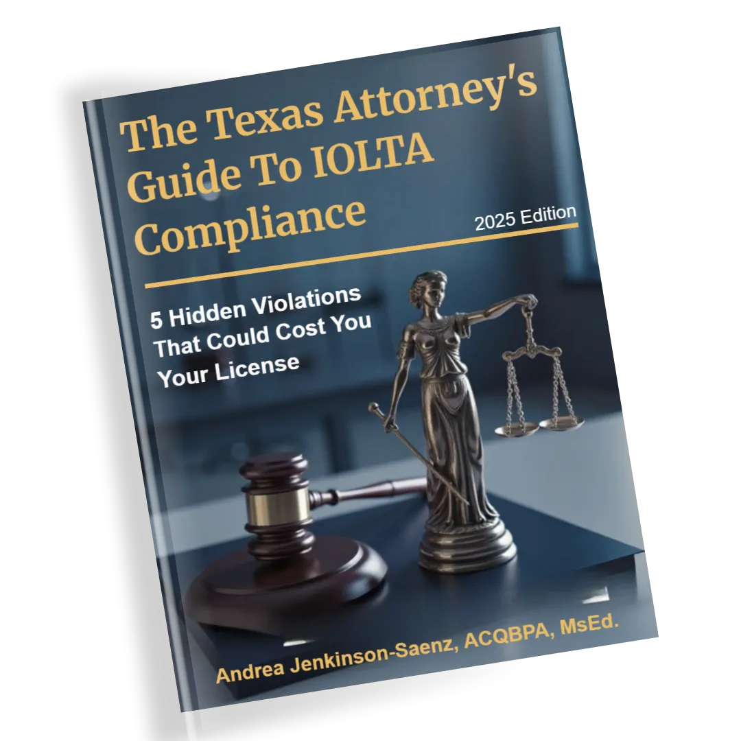 Join hundreds of Texas attorneys who have used this information to strengthen their compliance practices and reduce stress around IOLTA management.
